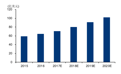 我国安防行业保持了快速增长的势头,产业技术、消费市场以及企业品牌建设等方面均快速提升,产业内涵逐渐延伸,形成了集研发、制造、施工、集成、运营、销售服务等为一体的产业链,视频监控、实体防护、防盗报警、防爆安检、出入口控制等系统全面发展。目前,我国已经成为全球最重要的安防视频监控市场之一,也是全球最大的安防视频监控产品制造地。数据显示,2016年我国视频监控市场总收入约64亿美元,根据预测,2020年我国视频监控市场约102亿美元,年均复合增长率预期为12%左右。
