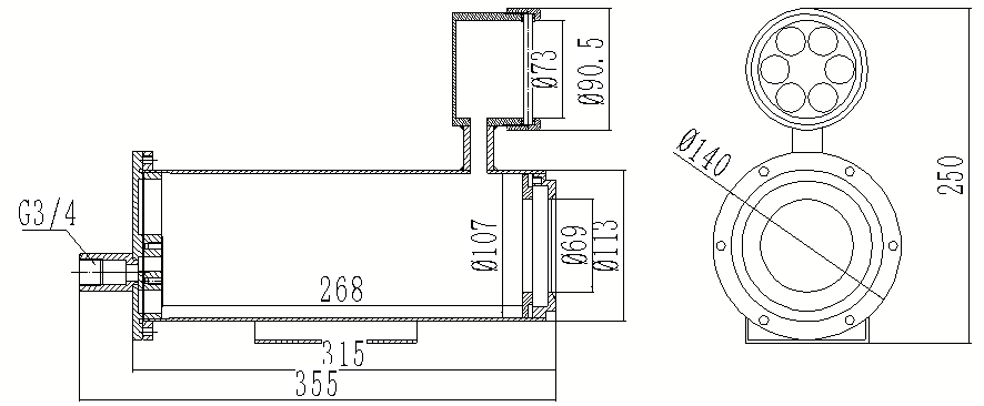 355(L)*Ø140(W)*250(H)mm